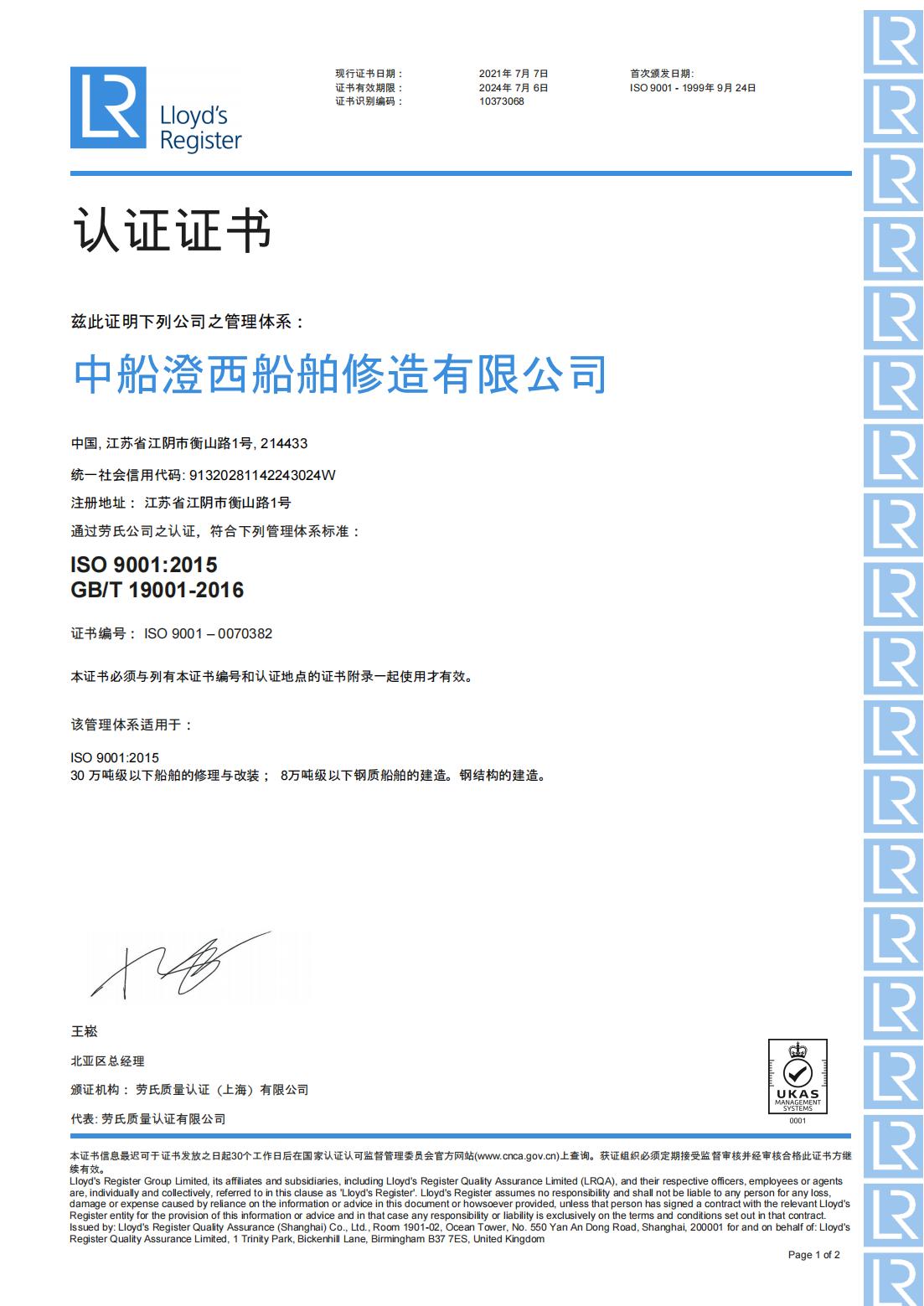 LR質(zhì)量管理體系證書